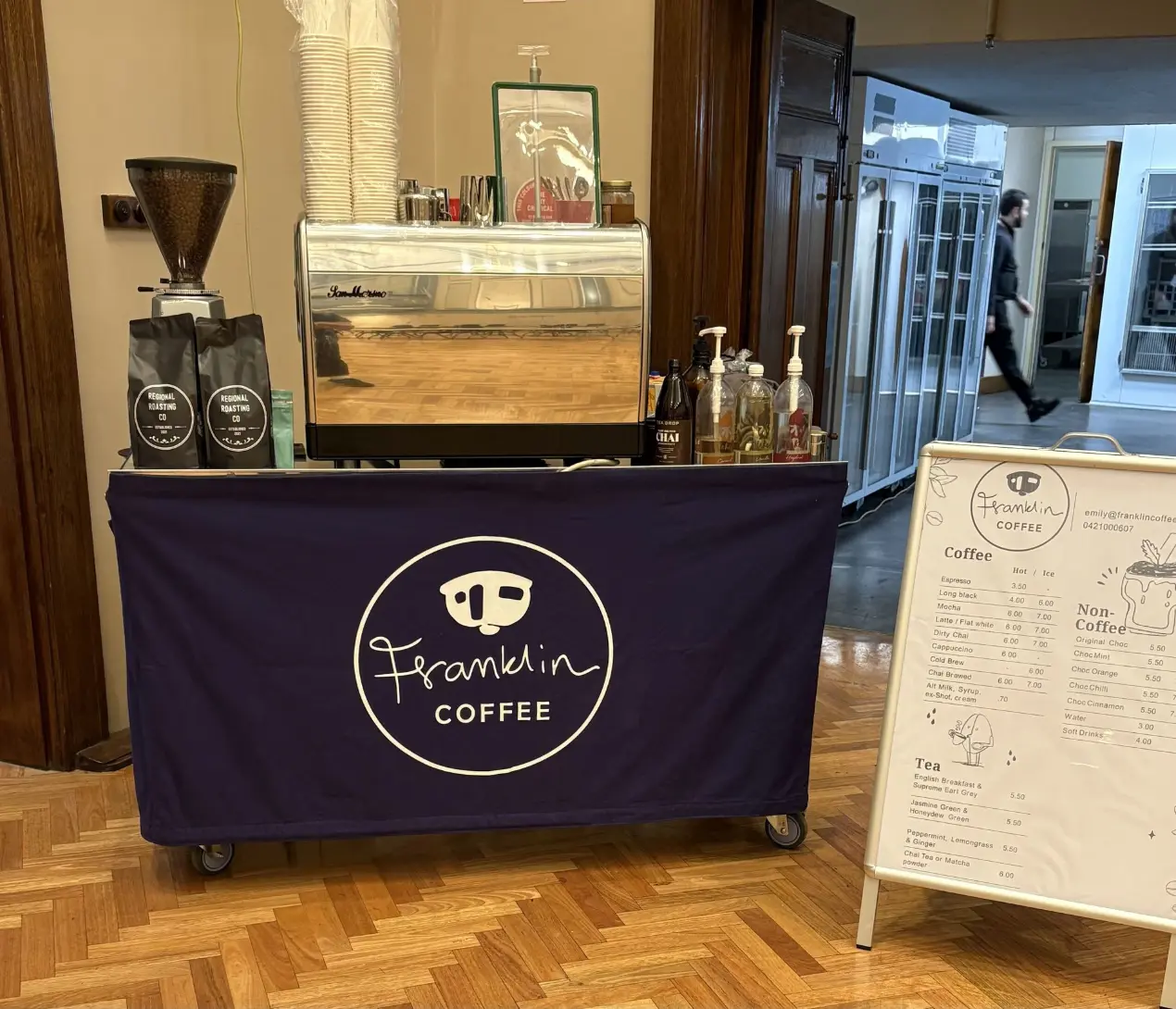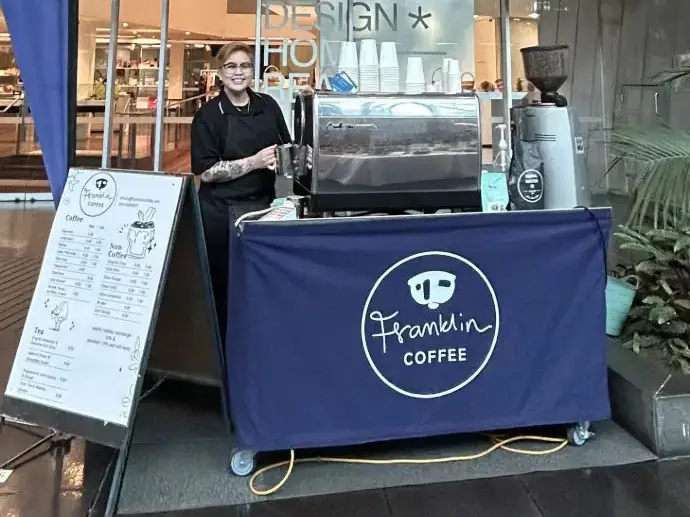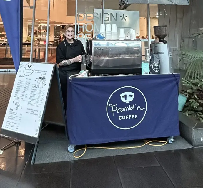 At Franklin we are not scared to put Baby in the corner. Our mobile coffee cart rolls up where the action is, serving up quality brews with charm, energy, and just the right amount of sass. Easy to move and impossible to ignore, Baby Cart brings the coffee to the people—wherever they are. Or let us shake it up a little with cocktails to wow your guests.